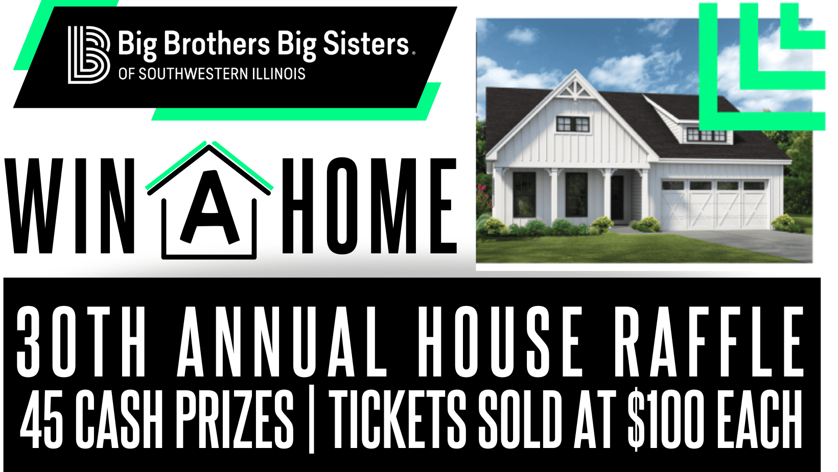 This Thirty First Annual House Raffle ("Raffle") is sponsored and conducted by Big Brothers Big Sisters of Southwestern Illinois ("BBBS"), an Illinois not-for-profit corporation with offices located at 2900 Frank Scott Parkway West #956, Belleville, IL 62223.
