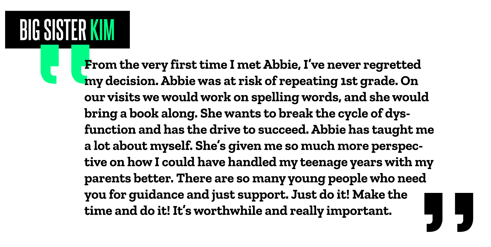 Bigs serve as friends, mentors and role models, helping children and teens gain greater self-confidence.